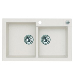 Należy podkreślić, że model ten dostępny jest w wielu kolorach. Jest to granitowy, narożny zlewozmywak dwukomorowy. Wykonany on został z wysokiej klasy naturalnych materiałów, czyli granitu z żywicami akrylowymi. Dzięki temu zlewozmywak cechuje się większą trwałością i odpornością na obicia. Co więcej, surowce użyte do produkcji tego produktu zapobiegają powstawaniu nieetycznych zacieków.